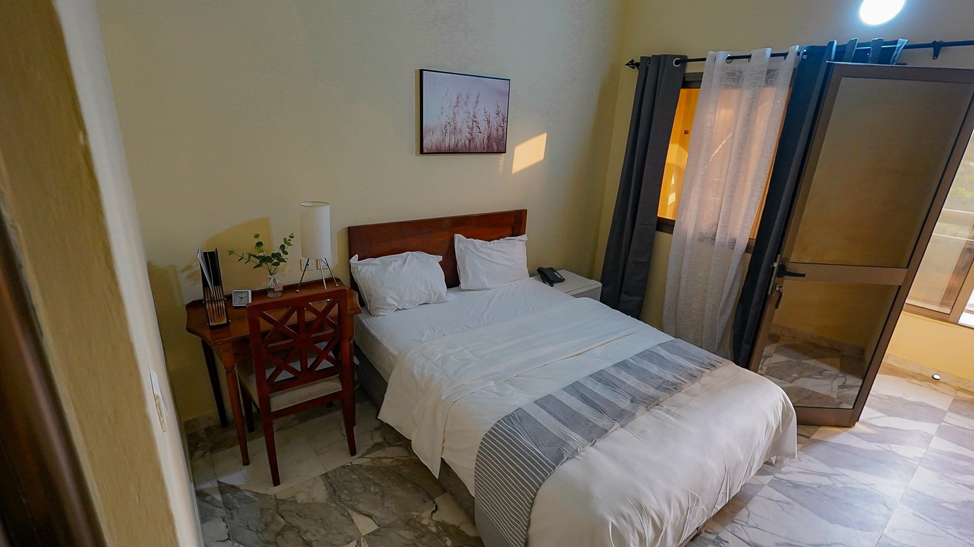 optimal rest. The modern and functional furnishings include a dedicated work desk, ample storage space, and